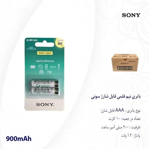باطری شارژی نیم قلمی ۲ کارتی SONY 900؛ انتخابی هوشمندانه برای صرفهجویی و دوام بالا
