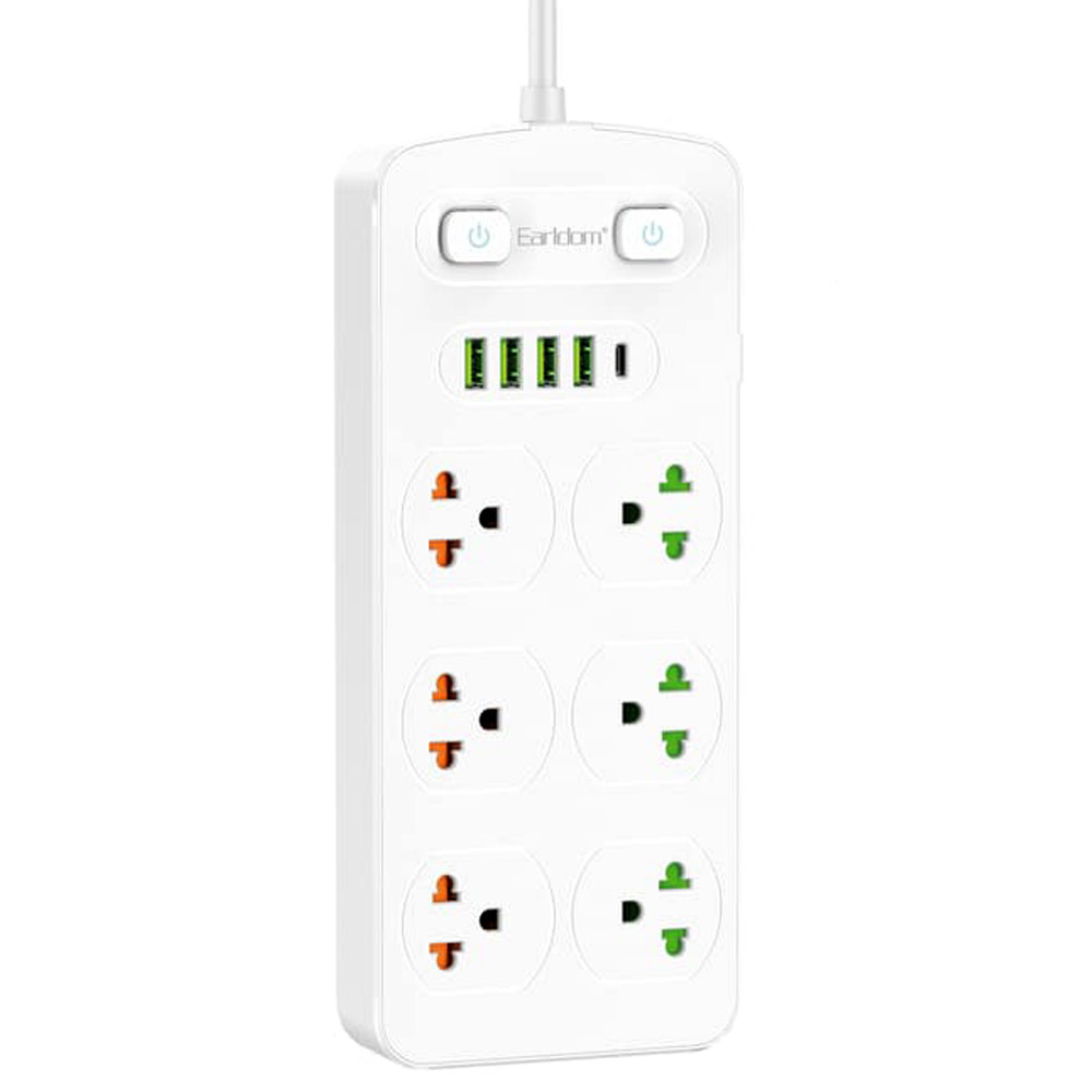 این چندراهی برق چندکاره دارای ۶ پریز ارت‌دار و پورت‌های USB‑A و Type‑C با جریان ۲.۱ آمپر است. چیپ‌ست هوشمند آن جریان و ولتاژ مناسب را تشخیص می‌دهد تا انواع گوشی، تبلت و ابزارهای کوچک را به‌سرعت شارژ کند.