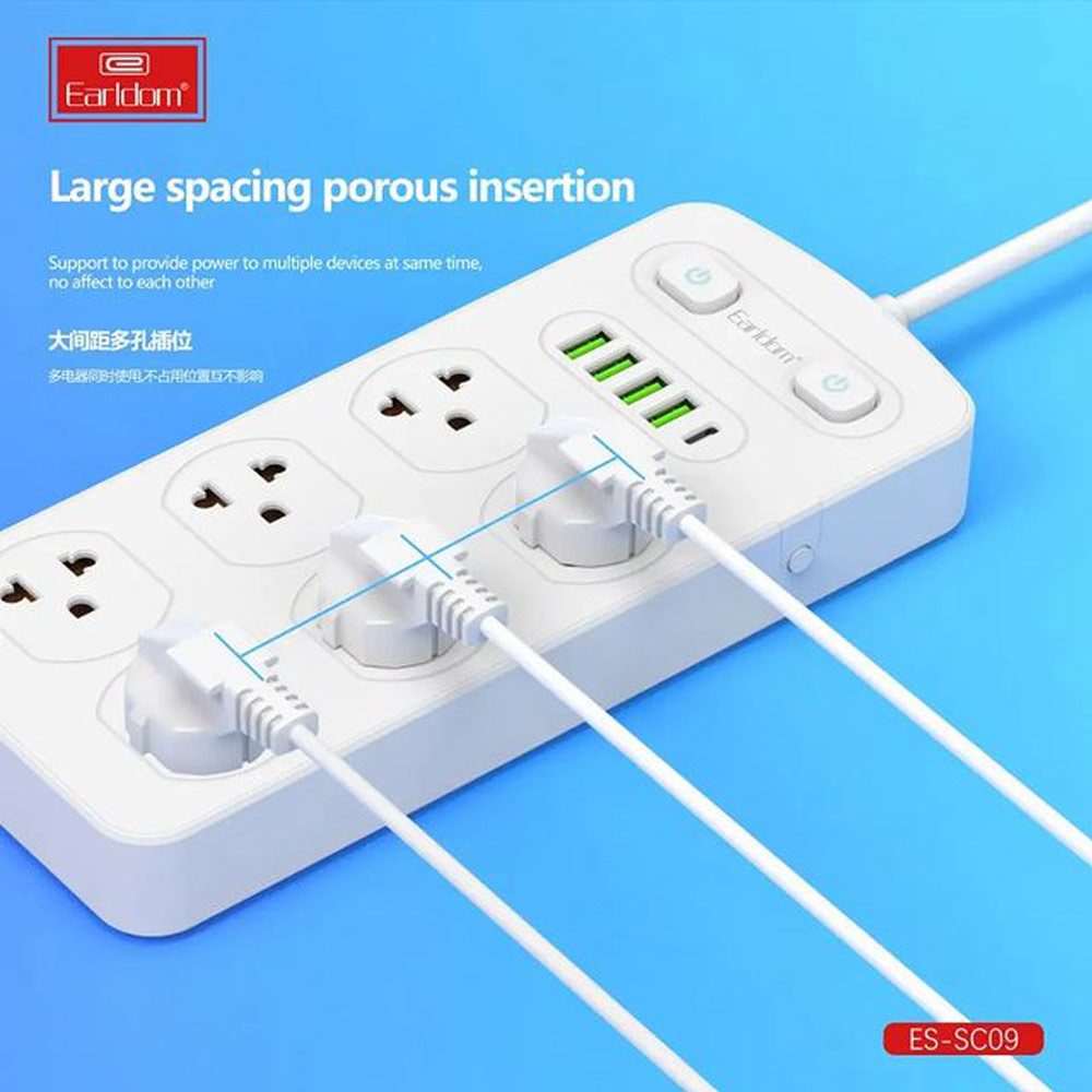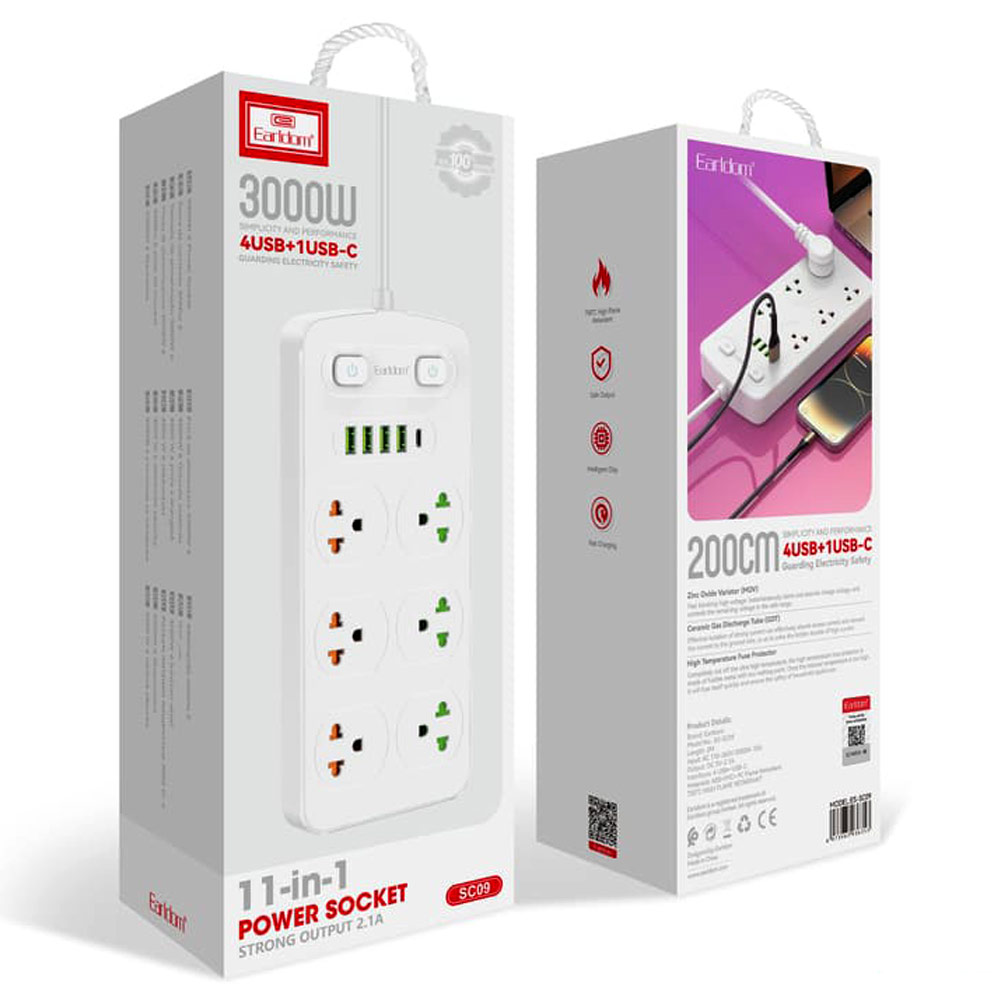 چندراهی برق ارلدام مدل ES-SC09 با کابل ۲ متری و ۶ خروجی